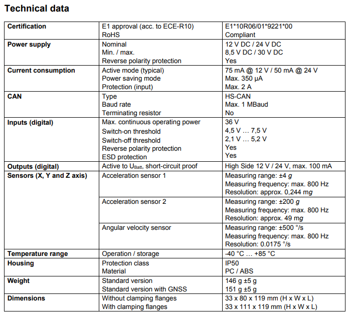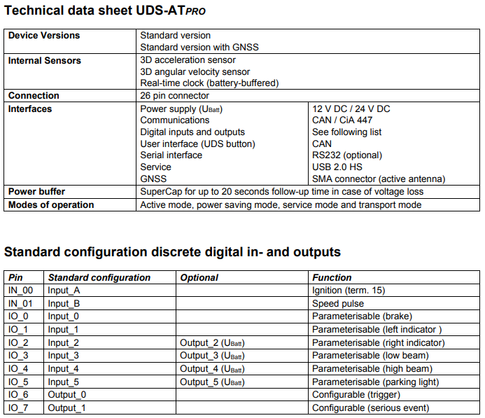 - Unique collision detection - The advanced collision detection algorithm enables the UDS-ATPRO to automatically distinguish between everyday situations, critical driving manoeuvres or an actual collision.